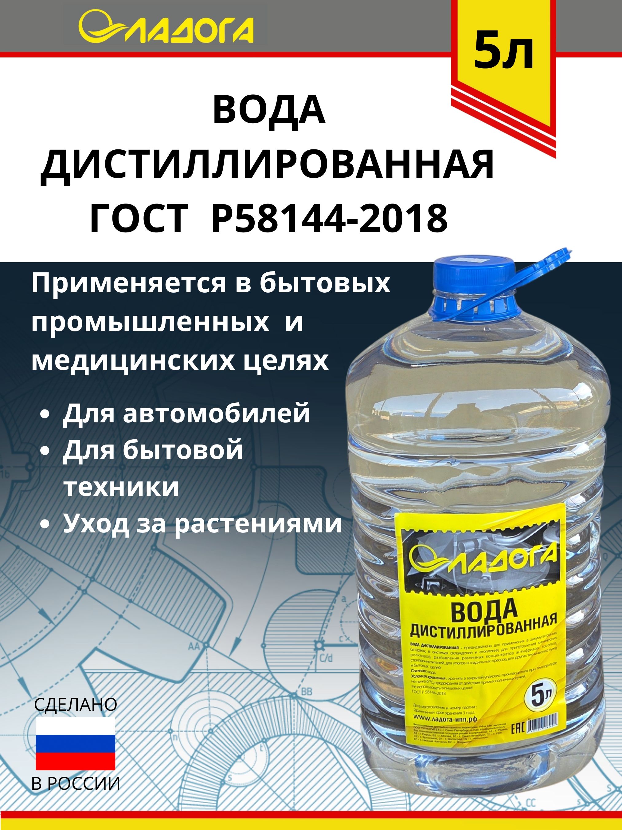 Дистиллированная вода ЛАДОГА соответствует требованиям ГОСТ Р 58144-2018