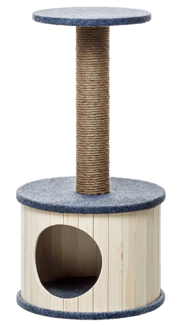 Домик «Сяпо» с войлочной обивкой станет красивым элементом интерьера вашего дома и уютным уголком для отдыха и заботы о коготках вашего домашнего пушистика. Это компактная и функциональная модель, которая не занимает много свободного места, что делает её идеальным вариантом для небольших квартир. На надёжном основании установлен домик в виде цилиндра, с удобным круглым входом. Крыша домика — площадка, на которой установлен столбик-когтеточка для ухода за коготками пушистика. На самом верху столбика установлена небольшая круглая полочка, которую оценят пушистые покорители высоты.
