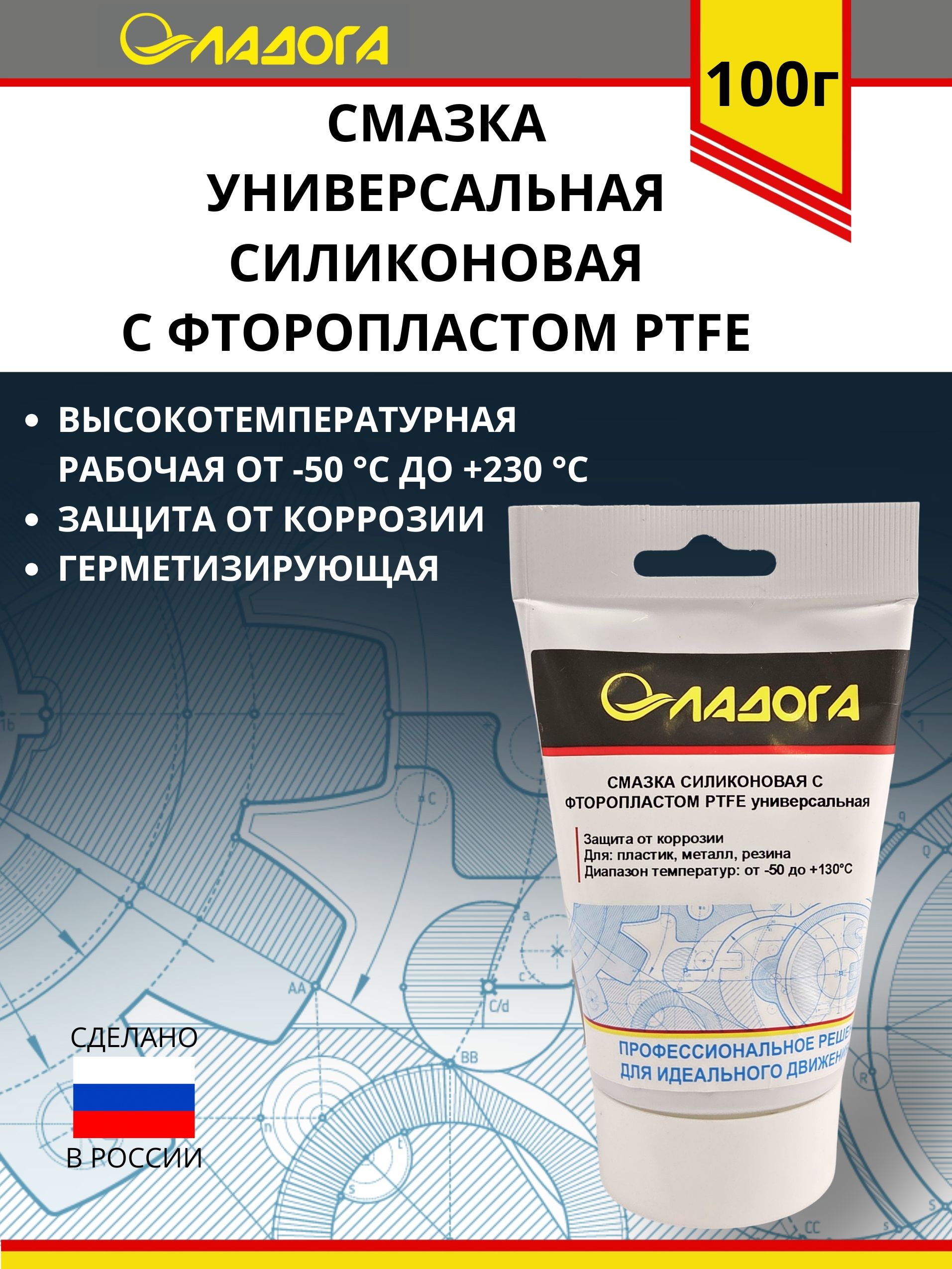 Смазка ЛАДОГА универсальная силиконовая с фторопластом PTFE (тюбик 100гр.)