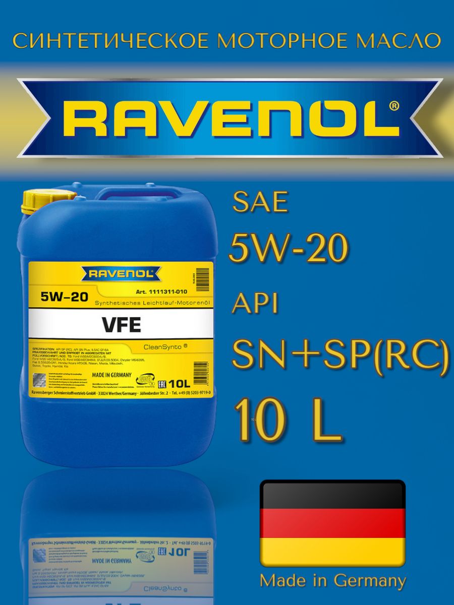 Ravenol масла, Моторное масло RAVENOL VFE SAE 5W-20 (10л) – лучший выбор и лучшие цены в интернет-магазине Равта!