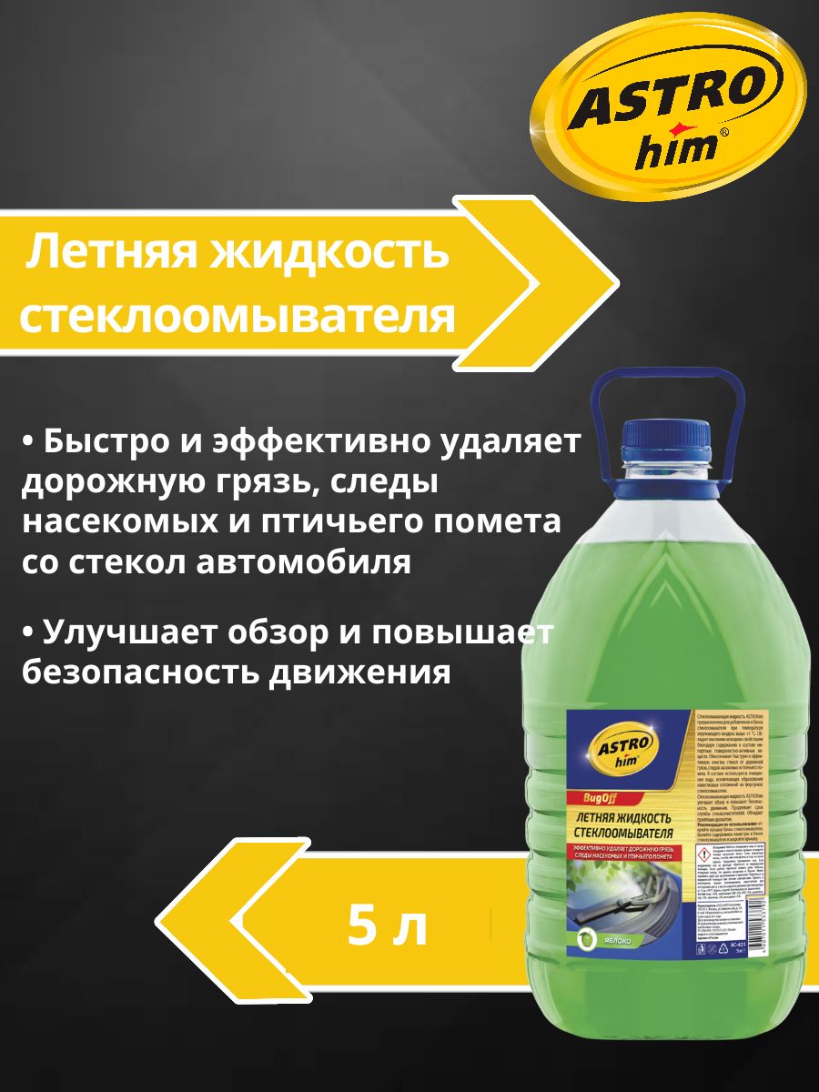 Жидкость для стеклоомывателя, Жидкость омывателя летняя 0 ASTROhim BugOff готовая яблоко 5 л AC425 – лучший выбор и лучшие цены в интернет-магазине Равта!